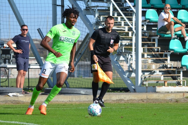 Druhý gól měl na kopačce Matej Franko, ale z hranice vápna těsně minul. Vzápětí se na pár minut přerušila hra, neboť ostrý zákrok na Luckyho Ezeha, kterému jeden z hostujících hráčů doslova rozpáral kopačky (důkaz ve fotogalerii) neohodnotil sudí Kolář kartou pro hráče Uničova, nýbrž ji udělil za protesty trenéru Bielanovi. A protože bez kopačky se hrát nedá, Ezehovi půjčil svoji obuv druhý brankář Ondřej Mrózek.