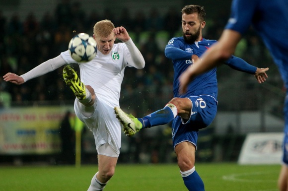 První dvacetiminutovku Slavia ovládla a na jejím konci nakonec skórovala. Po rohovém kopu Stocha a jemné teči van Burena zamířil přesně hlavou neuhlídaný střelecký zabiják Milan Škoda. Ve druhé polovině prvního poločasu převzali iniciativu domácí a slávističtí hráči se měli co ohánět, aby se ubránili.