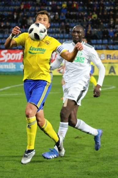 Zlín se snažil dostávat do brankových příležitostí z postranních centrů, jeden takový málem zužitkoval v první gól zápasu pět minut před pauzou urostlý Beauguel, jenže před ním skvěle zasáhl Ján Krivák.