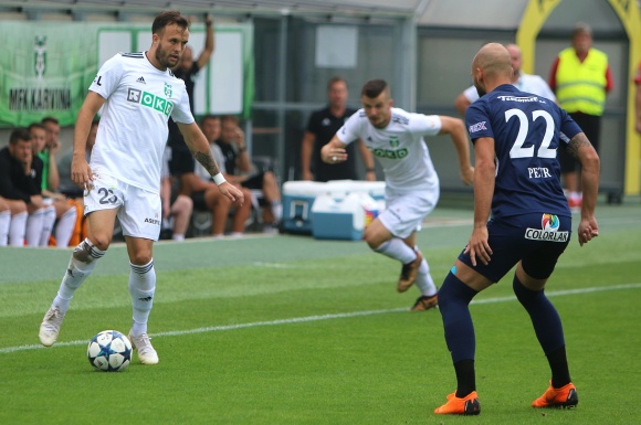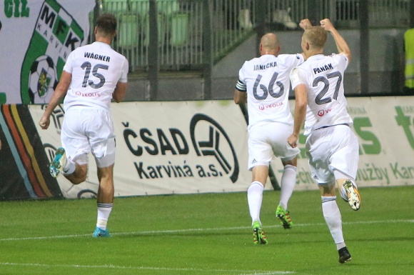 Hosté z Uherského Hradiště poprvé pozlobili karvinskou obranu v šestadvacáté minutě, když Kalabiška čistě vybojoval míč v souboji s Janečkou a centrem jej poslal před bránu. Tam byl osamocený Havlík, a jen díky Panákovi neskončil míč v síti, protože jej vykopl před brankovou čárou. Na druhé straně mohl vzápětí odpovědět Tomáš Wágner, jenže ostrý centr Janečky nezkrotil a hlavou zamířil jen do ochranné sítě za brankou.