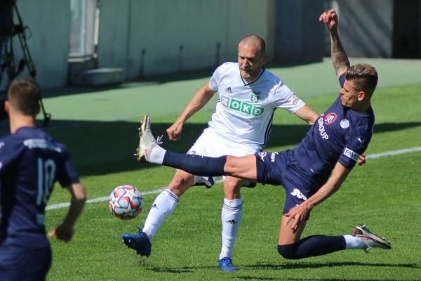 šanci hasil na poslední chvíli skluzem Mikuš, za ním už byli dva hráči hostů,