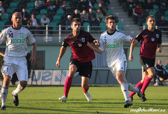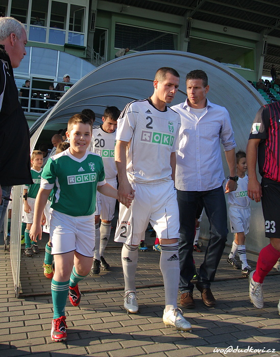 Domácí trenéři museli na hřiště vyslat pozměněnou sestavu kvůli vykartovanému středopolaři Michalu Gondovi a díky zranění nemohli nastoupit David Mikula a Antonín Presl. Úvod zápasu byl klasický. Na obou týmech byla vidět důležitost zápasu, ale přeci jen byli aktivnější domácí, kteří drželi více balón na svých kopačkách. První zajímavou příležitost měl po čtvrthodině Roman Fischer. Jeho bombu vyrazil hostující brankář Antošík na roh.