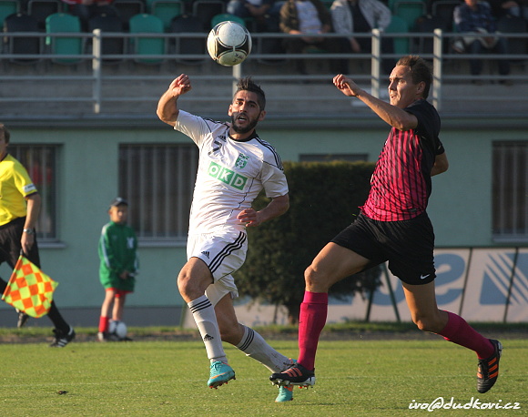 Ve dvacáté minutě se už domácí mohli radovat. Po levé straně zatáhl míč do vápna Ondřej Cverna. Byl sice jemně faulován, ale souboj ustál a předložil míč Pavlu Vránovi, pro kterého již nebyl problém poslat míč do sítě – 1:0. Domácím dodala branka sebevědomí a po rohovém kopu z 25. minuty se mohl radovat opět Vrána, ale tentokrát nemířil přesně mezi tři tyče. Hůře bylo deset minut před přestávkou. Z ničeho nic prošel míč od hostujícího Fikejze křížem přes celé pokutové území až k volnému Karalovi, který vyrovnal – 1:1.
