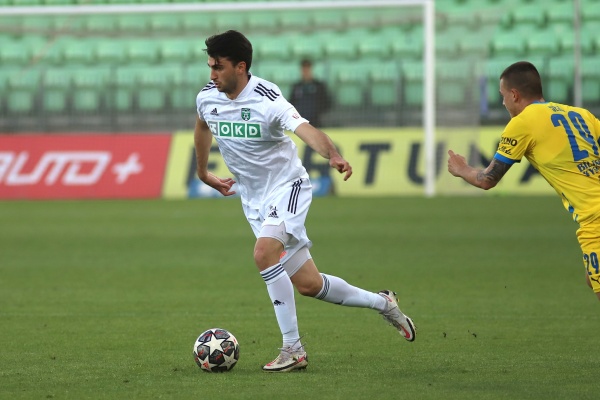Domácí byli za aktivitu odměněni ve 41. minutě – znovu skvěle odcentroval Kobouri, míč se ve vápně dostal ke zcela volnému Sinyavskému a ten tvrdou střelou do šibenice vyrovnal! V samotném závěru prvního dějství byl ještě v pohotovosti gólman Neuman, ale s pokusy Fortelného a Sejka si poradil.