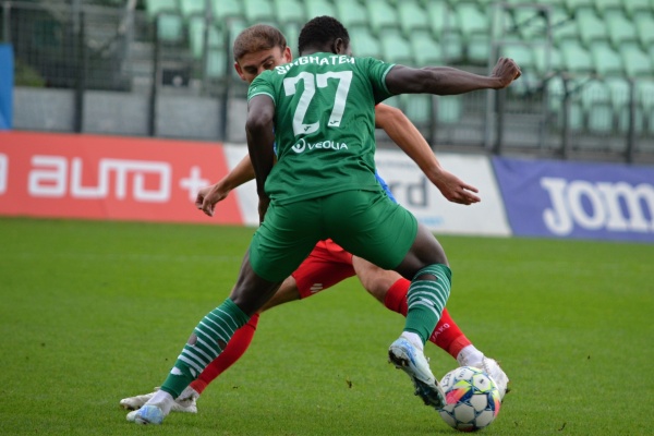 Domácí tým v zelených dresech se rozjížděl pomalu, ale po zhruba pěti minutách už převzal pevně otěže zápasu do svých rukou a byl až do konce utkání jasně lepším týmem na trávníku. Hosté nestíhali rychlé a kombinační hře domácího týmu. V první obrovské šanci se po krásné akce několika hráčů zjevil Andrija Ražnatović, ale úplně sám na zadní tyči nedostal míč do sítě, jelikož jeden z hostujících zadáků mu světovým skluzem na brankové čáře zabránil v jasné trefě.